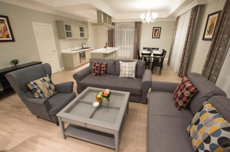 Вблизи от места временного размещения находится множество баров, кафе, магазинов. Также за несколько минут можно дойти до популярных достопримечательностей — Резиденции Президента, Монумента Отан Коргаушылар.